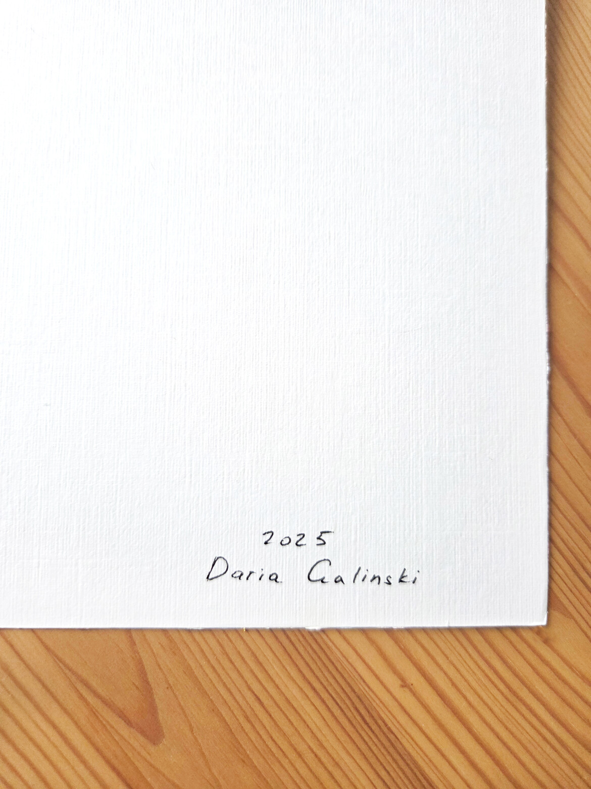 Please note that the colors of the artwork may appear slightly different from those seen on a screen due to variations in digital displays and lighting conditions. It is recommended that the work be exhibited under glass for protection and optimal preservation.
